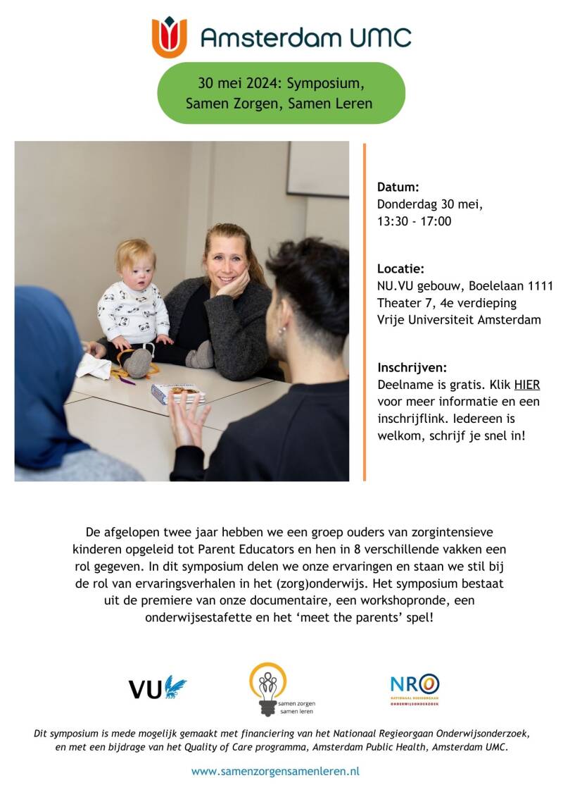 Op 30 mei 2024 vond het symposium 'Samen Zorgen, Samen Leren' plaats. Maar liefst 160 mensen schreven zich in, redelijk gelijk verdeeld onder artsen en andere zorgverleners aan zorgintensieve kinderen, ouders en naasten, en onderwijsprofessionals.